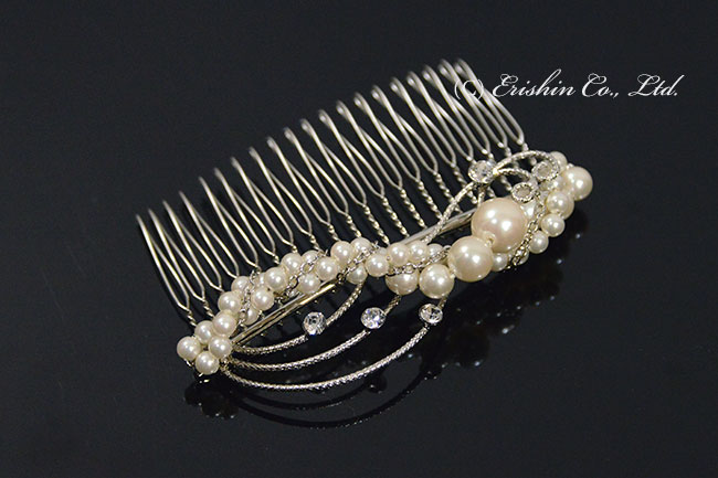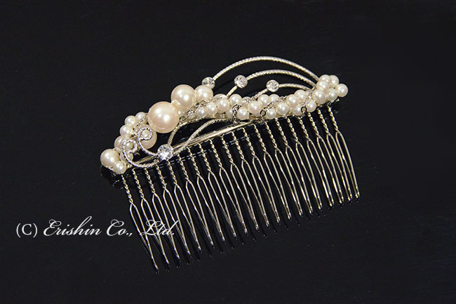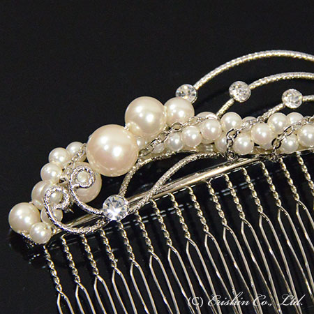 コーム型かんざし(螺旋パール風唐花)
