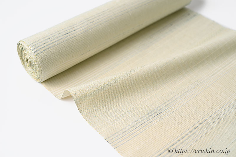 下井伸彦 下井紬/花織入朧緯縞(淡い亜麻色に深縹をアクセントに)