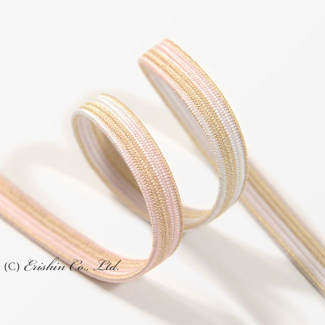 帯締め 貝の口組(退紅×白金)