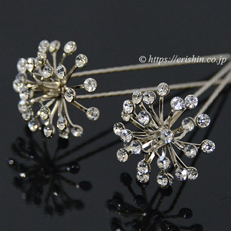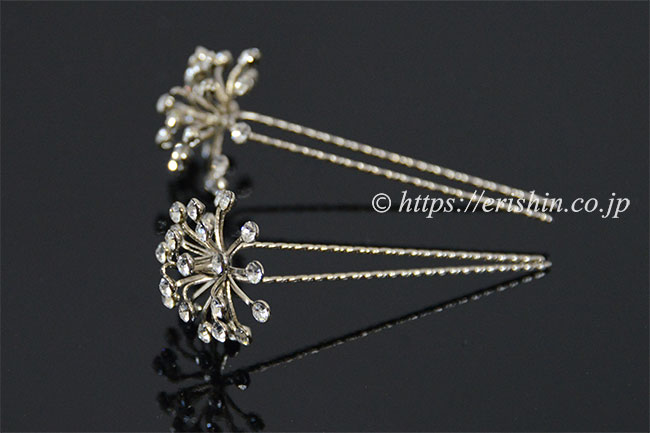 Uピン型髪飾り(フラワー/ダイヤ風)