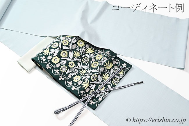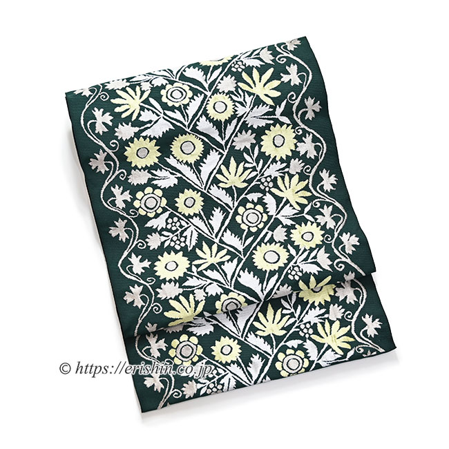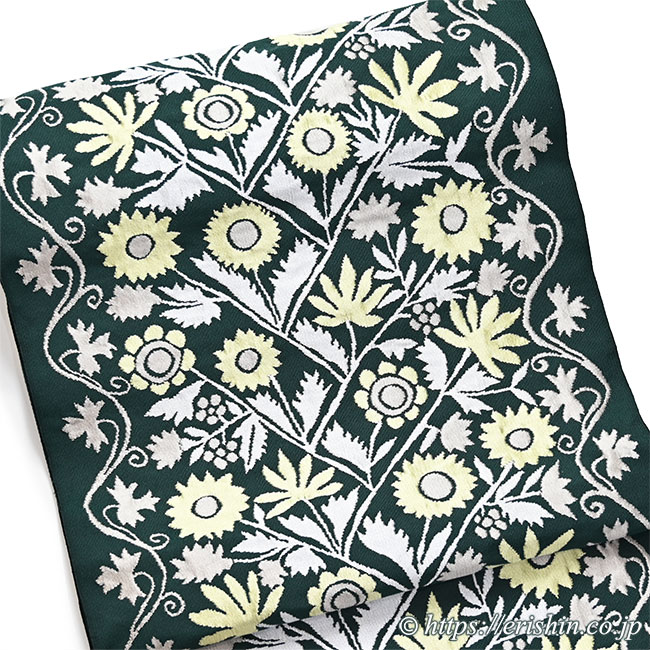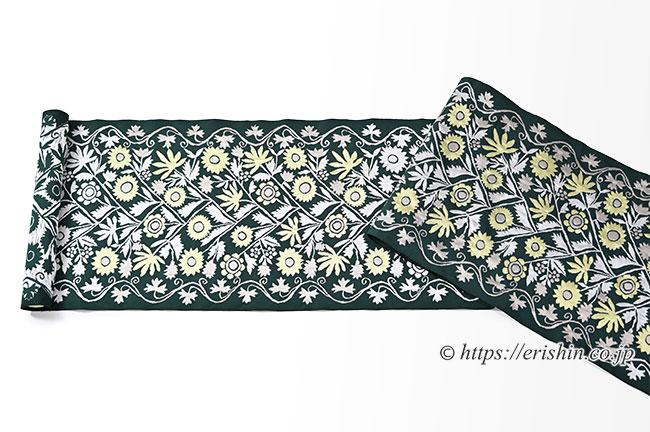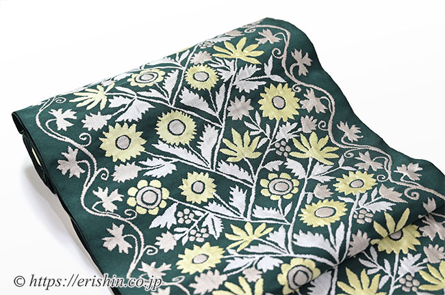 洛風林 九寸織名古屋帯(ウクライナ縫花文/千歳緑)