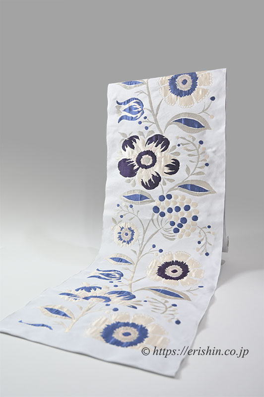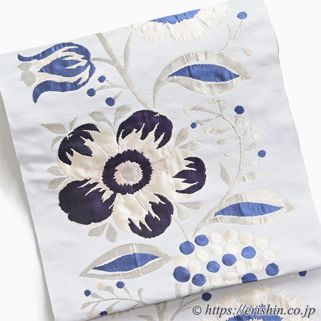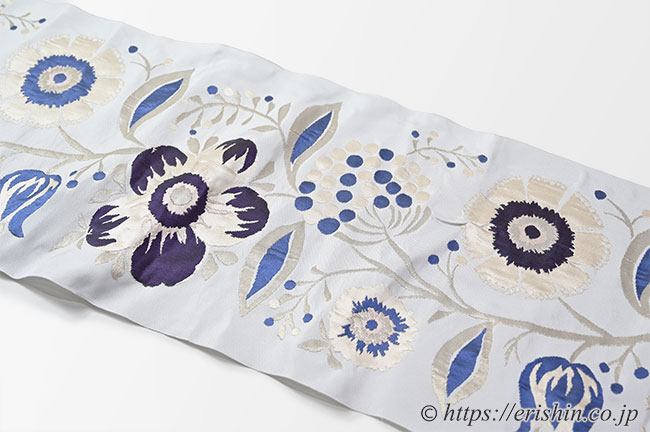 洛風林 九寸織名古屋帯(キエフ花唐草/月白色)