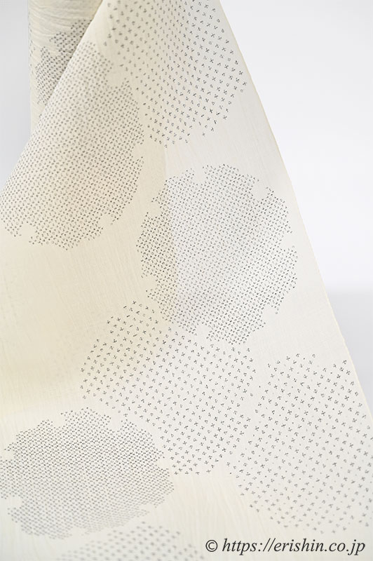 それぞれの雪輪が反物全体に織り上げられた小千谷縮でございます。
