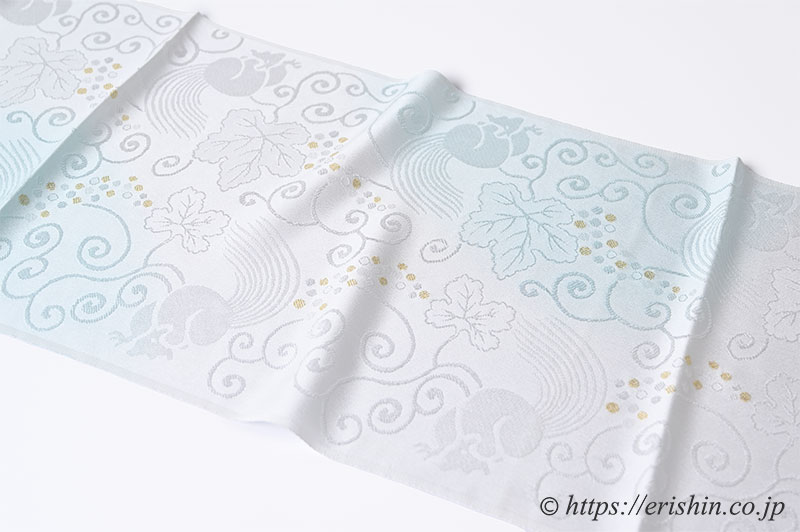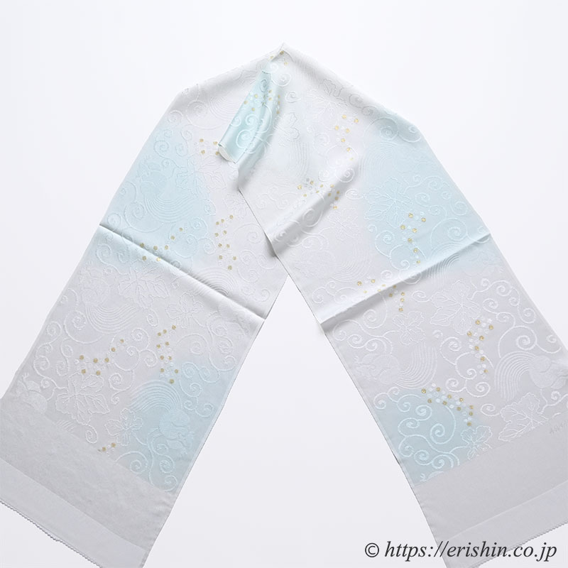 帯揚げ(葡萄唐草/白郡色と金の縫取り葡萄)