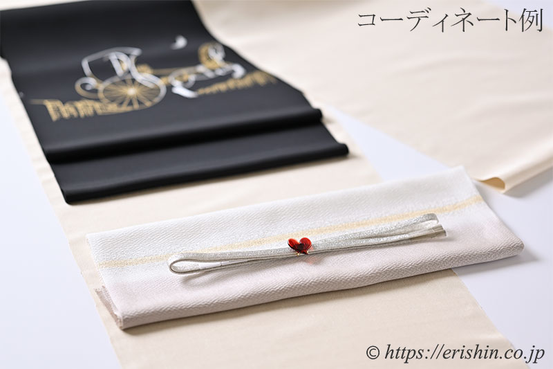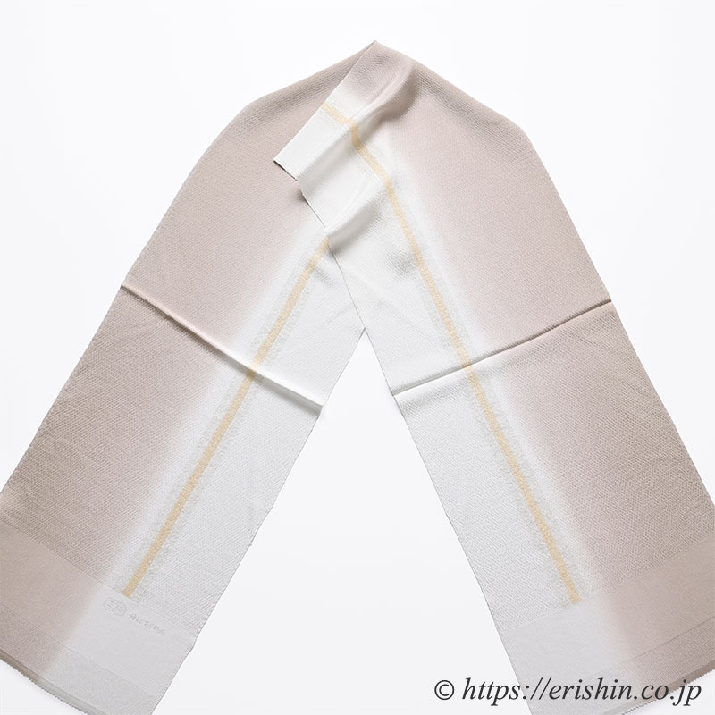 亜麻色あるいは白の無地の帯揚げとして、金銀のラインを見せる帯揚げとして様々にお楽しみください。
