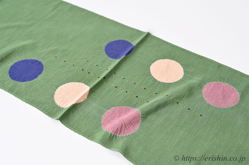 そしてドットのような小さな丸を帯揚げの中央部分に染めた帯揚げです。