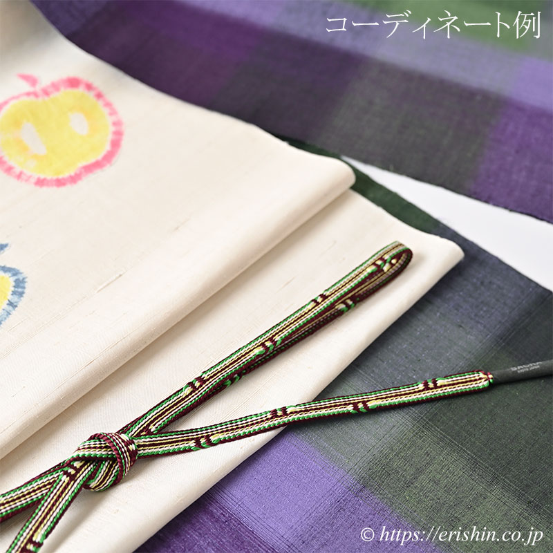 竹の節を連想させるような組文様に個性的な色遣いは着こなしのスパイス的存在に。