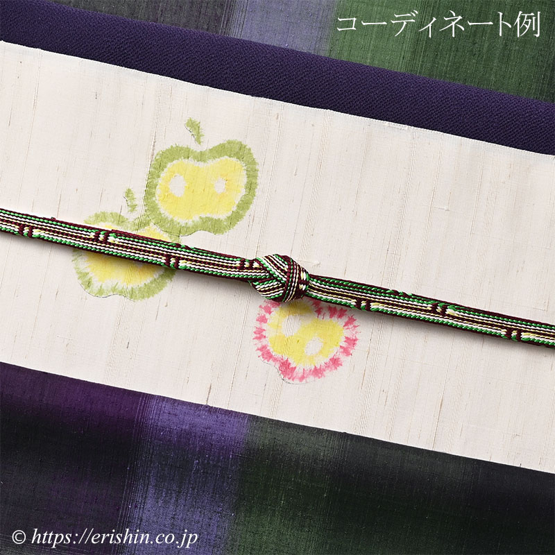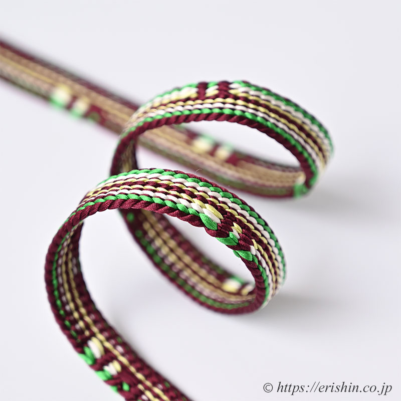 帯締め 綾竹組(三色段〆切/栗色に翠)