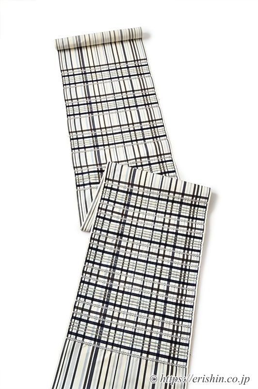 洛風林さんが制作される本品も、格子や縞を楽しむ名古屋帯。