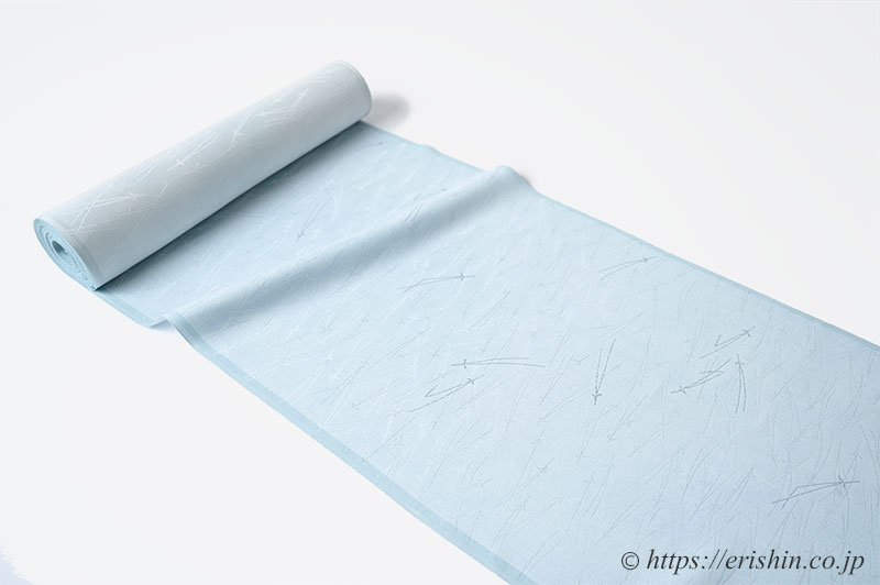松葉のふっくらとした立体感に万筋の経の白のラインがからみあい、素無地に染める万筋とは一味違う趣をお楽しみいただけることでしょう。