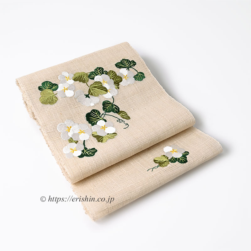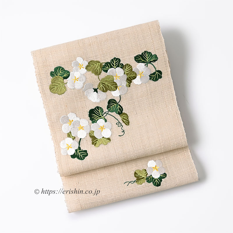 刺繍名古屋帯(夕顔/夏紬地)[夏・単衣向]